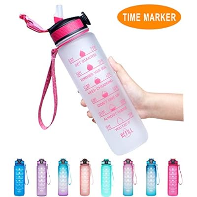 Giotto 32oz Large Leakproof BPA Free Drinking Water Bottle with Time Marker & Straw to Ensure You Drink Enough Water…
