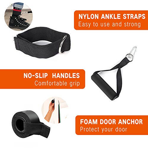 💪【EXCLLENT QUALITY】- Made of premium natural latex, kind to the environment,wear-resistant and long service time, it will provide the maximum resistance and no need to worry about it breaking. TPE foam door anchor will not leave any mark on your door when you are using the exercise bands.The bands can be used alone or stacked in any combination to achieve your optimal resistance level up to 150 lbs.