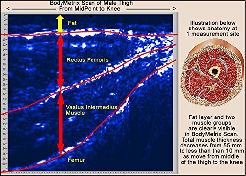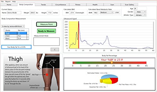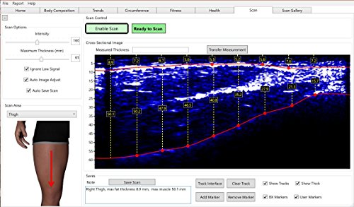 Uses ultrasound technology to accurately measure fat & muscle thickness and calculate body composition