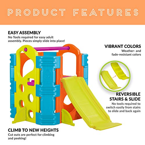 REVERSIBLE SLIDE AND STAIRS: Easy to assemble and adapt, the slide can quickly be converted to stairs for young climbers. Pieces simply click into place for playtime