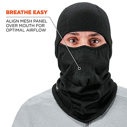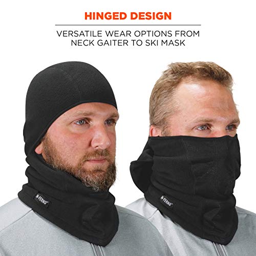 The Ergodyne N-Ferno 6823 Wind-Proof Hinged Balaclava Face Mask delivers the cold-blocking protection of a full face mask but can also be worn as a neck gaiter or face shield. The unique hinged design allows you to adjust the amount of coverage you need depending on the weather. Made from stretchable, breathable fleece for a comfortable fit that seals out the cold. Wind-resistant fabric covers the nose, mouth, and neck for added warmth where you need it most. Reflective accents add visibility at night or in low-light conditions. One size fits most. This winter face mask is perfect for those who work in construction, freight/baggage, drilling/mining, oil/gas refining, iron/steel, delivery/service, landscaping/grounds, warehousing, and working in refrigerated areas. Can also be worn as a ski face mask or worn hunting, climbing, running, cycling, boating, skating or other outdoor sports.