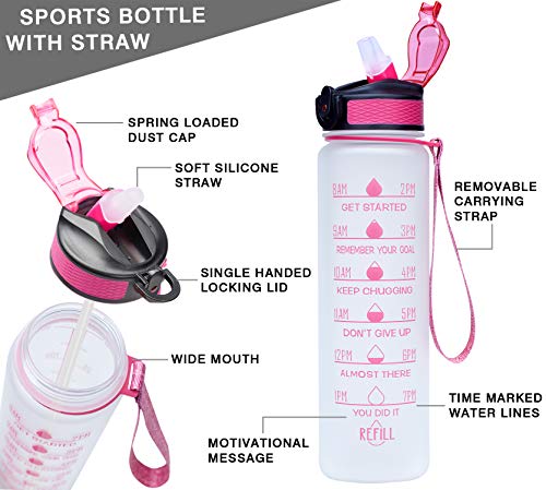 【MOTIVATIONAL QUOTE & TIME MARKER】- With unique inspirational quote and time markers on it,this water bottle is great for measuring your daily intake of water,reminding you stay hydrated and drink enough water throughout the day.A must have for any fitness goals including weight loss,appetite control and overall health.