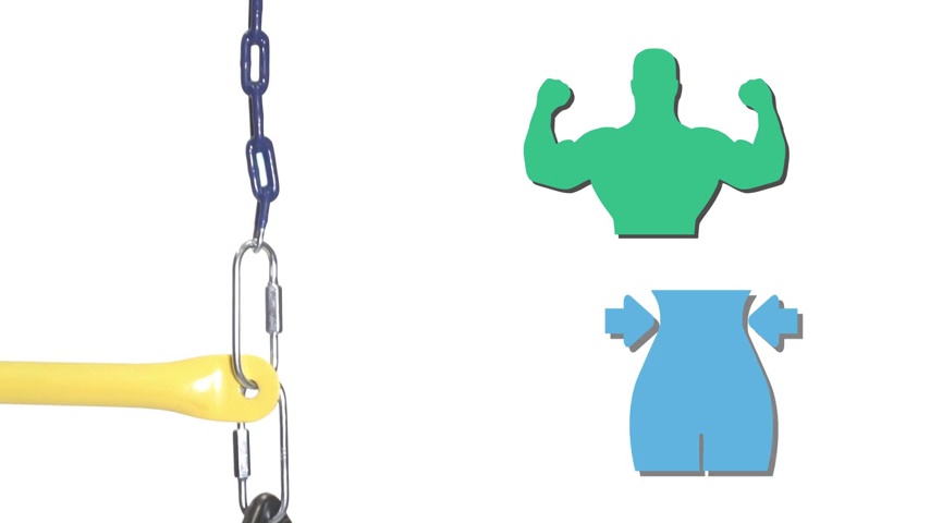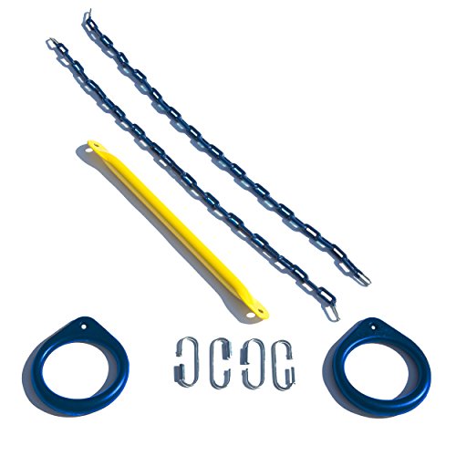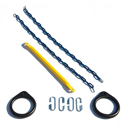Go for the gold with the ring and trapeze combo swing by swing-n-slide. Children will embrace their inner acrobat on this versatile swing. Hang from the 19″ Trapeze bar by your hands or legs or sit atop the bar for a traditional swinging experience. The durable plastic Rings are perfect for dangling and flipping. The vinyl-dipped chain and a powder-coated bar protect little fingers from rust and provide a secure grip. Supports up to 115 pounds when attached to swing Hangers (not included).