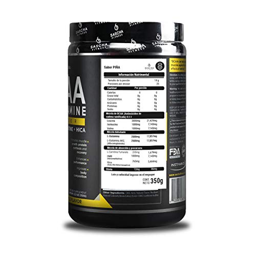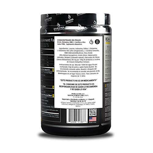 Sascha Fitness BCAA’s is the latest in training supplementation. This unique and powerful amino acid blend enhances performance and recovery like no other. It will also provide you clean, long lasting energy to get you through even the most grueling of workouts.Its been formulated with 4:11 BCAA’s, Glutamine, HMB, HICA and L-Carnitine. Why ours is best? Because of the quality we offer and the blend we designed. BCAA: (branched-chain amino acids; leucine, valine, isoleucine) are metabolized differently than other amino acids, they be oxidized directly in the muscles during exercise for energy. BCAA’s can increase the availability of carbohydrates and help protect the muscles from exercise-induced protein breakdown. BCAA’s supports optimal muscle size, strength, and performance. They prevent muscle damage as well as muscle soreness. They may also help decrease cortisol levels. GLUTAMINE: plays a key role in protein synthesis. Studies have shown that L-Glutamine supplementation can minimize breakdown of muscles, aid in recovery, improve protein metabolism and on top of that It may also help to lower sugar cravings. HMB: (beta-hydroxy beta-methylbutyric acid) is an active metabolite of the amino acid leucine. It enhances recovery, increases muscle building as well as inhibits muscle breakdown, Improves your performance, VO2max and It may help with fat loss. HICA: is also a metabolite of leucine. Is has anti catabolic properties. It neutralizing the waste products created during high-intensity exercise. L- Carnitine: helps to transport fat into the mitochondria of cells. Once there, they can be oxidized, used as fuel, to generate ATP= energy. L-carnitine can boost both your training and body composition.Since we use natural color, pigmentation is not always homogeneous. Some components of our products are not 100% soluble in water , it’s normal to see some particles in it.