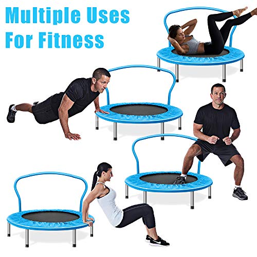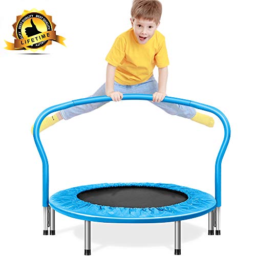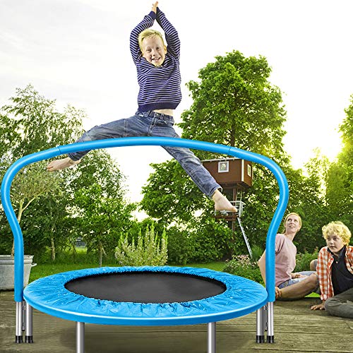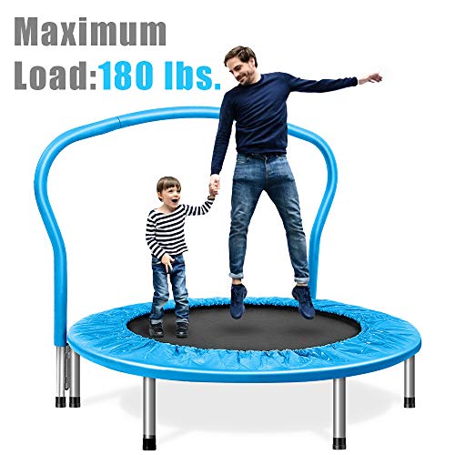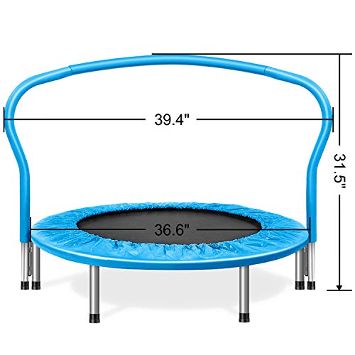 This Airzone kids trampoline, fitness Trampoline uses a band suspension system, as opposed to the metal springs that are commonly used with other brands. It provides for a more controlled and much quieter rebound, allowing for quiet use. Ideal for use indoors or outdoors when warm weather comes, it’s a fantastic way for all to exercise while having fun. This fitness trampoline does not have any sharp spring ends, making it safer and more reliable. When using it indoors, be sure it is positioned in a room with a high ceiling to maximize head clearance. The unit is easy to set up and fold down quickly. This blue trampoline features compact dimensions, so you can store it away when not in use. It’s small enough to slide under beds or fit in a closet, allowing for easier organization in small spaces.