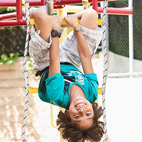 Multifunctional: the rope ladder can be attached to a jungle gym, swing Set, or even to a tree in the backyard, ready for your tree house or tree fort, the options for adventure are limitless. Extra long 6-rung swing for all age children to enjoy, suitable for an 8-10 ft swing beam.