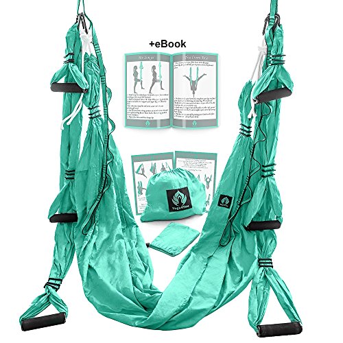 STRONG and DURABLE: Aerial flying yoga trapeze swing is made of studio quality silk nylon fabric. Anti gravity yoga hanging kit is strong enough to hold up to 600 lbs