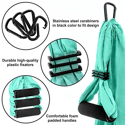 COMFORT: Large and wide antigravity yoga hammock swing (98″x59″) has double material layer in the middle part. Fly air yoga swing set with foam handles makes your aerial inversions and exercises more pleasant