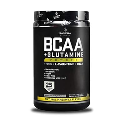 Sascha Fitness BCAA 4:1:1 + Glutamine,HMB,L-Carnitine, HICA | Powerful and Instant Powder Blend with Branched Chain…